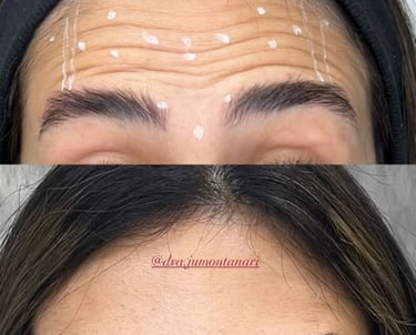 Rugas e linhas de expressão: Suavização com aplicação de toxina botulínica nas áreas mais comuns, como testa, glabela e pés de galinha.